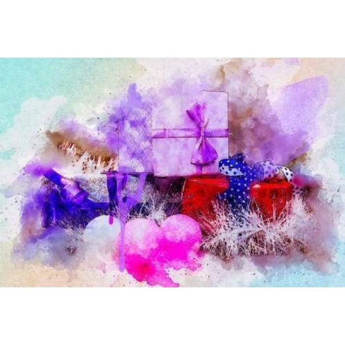 Create your own shimmering DIY wall art, one "diamond" at a time! This gorgeous full drill Diamond Painting Kit is entitled "Christmas Presents Abstra..