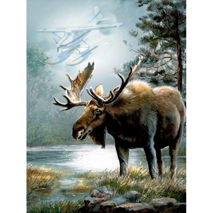 Create your own shimmering DIY wall art, one "diamond" at a time! This gorgeous full drill Diamond Painting Kit is entitled "Alaska Moose With Floatpl..