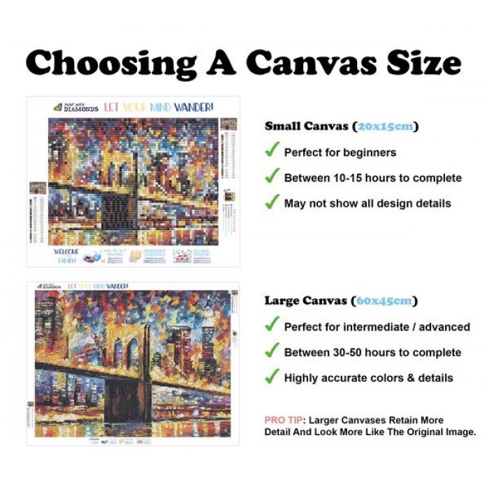 Feel the satisfaction of watching your Diamond Painting come together before your very eyes. This gorgeous artwork entitled "Brooklyn Bridge" by artist Leonid Afremov is now available as a Full Drill Diamond Painting Kit in your choice of Square or Round Diamonds.