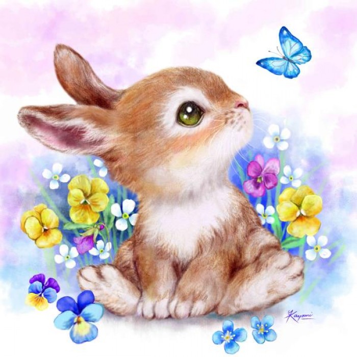 Feel the satisfaction of watching your Diamond Painting come together before your very eyes. This gorgeous artwork entitled "Bunny And Butterfly" by artist Kayomi Harai is now available as a Full Drill Diamond Painting Kit in your choice of Square or Round Diamonds.