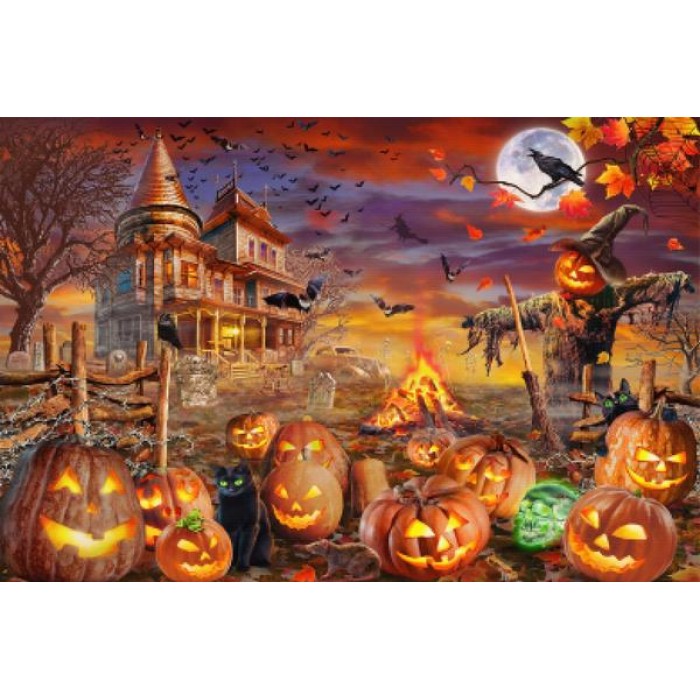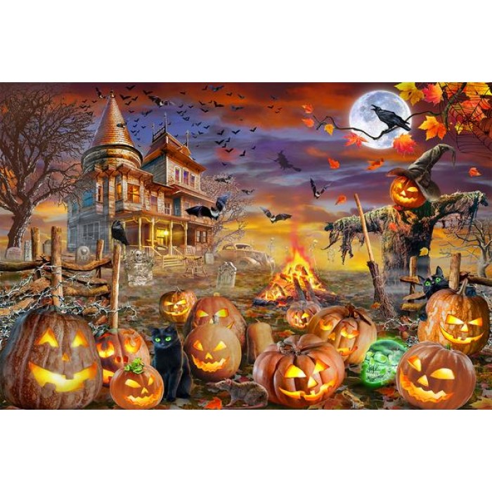 Feel the satisfaction of watching your Diamond Painting come together before your very eyes. This gorgeous artwork entitled "Halloween Spooky Pumpkins" by artist Adrian Chesterman is now available as a Full Drill Diamond Painting Kit in your choice of Square or Round Diamonds.