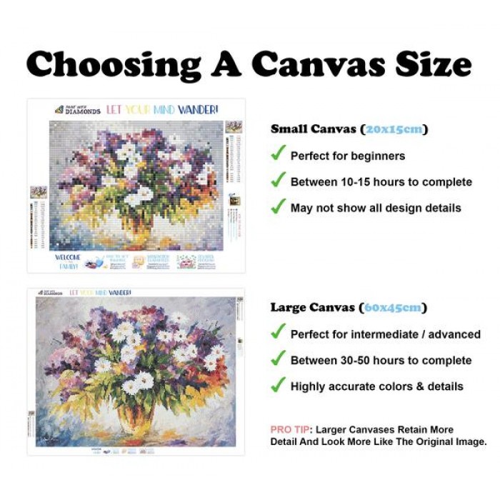 Feel the satisfaction of watching your Diamond Painting come together before your very eyes. This gorgeous artwork entitled "Lilac And Chamomiles" by artist Leonid Afremov is now available as a Full Drill Diamond Painting Kit in your choice of Square or Round Diamonds.