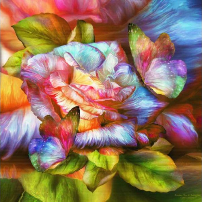 Create your own shimmering DIY wall art, one "diamond" at a time! This gorgeous full drill Diamond Painting Kit is entitled "Rainbow Rose And Butterfl..