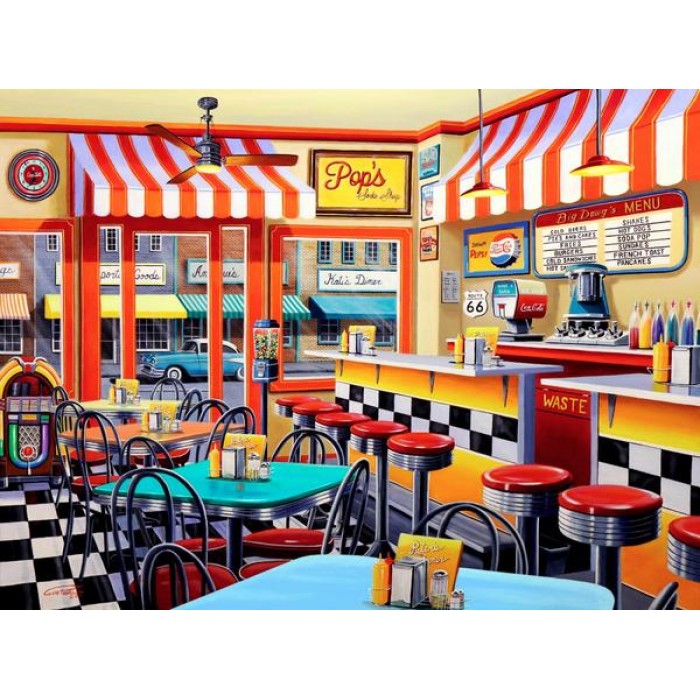Feel the satisfaction of watching your Diamond Painting come together before your very eyes. This gorgeous artwork entitled "Peter's Malt Shop" by artist Geno Peoples is now available as a Full Drill Diamond Painting Kit in your choice of Square or Round Diamonds.