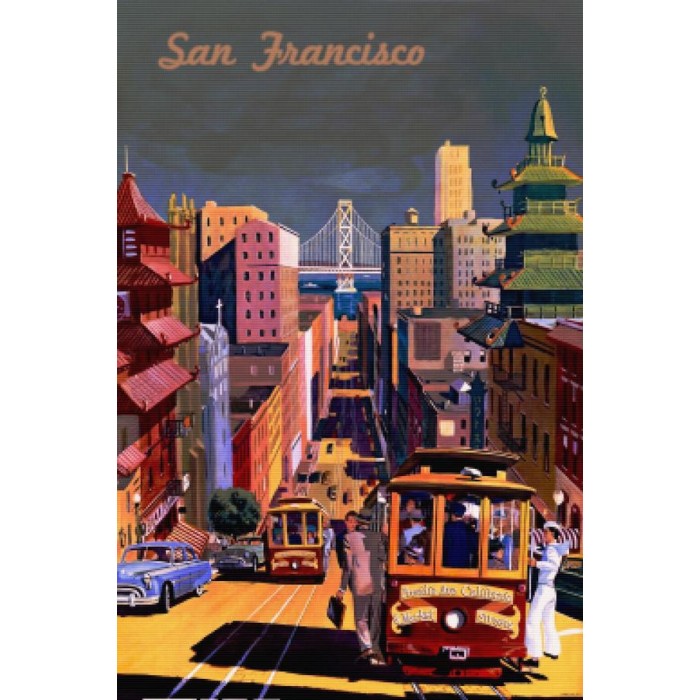 Create your own shimmering DIY wall art, one "diamond" at a time! This gorgeous full drill Diamond Painting Kit is entitled "San Francisco Vintage Pos..