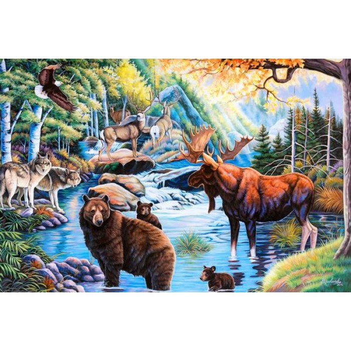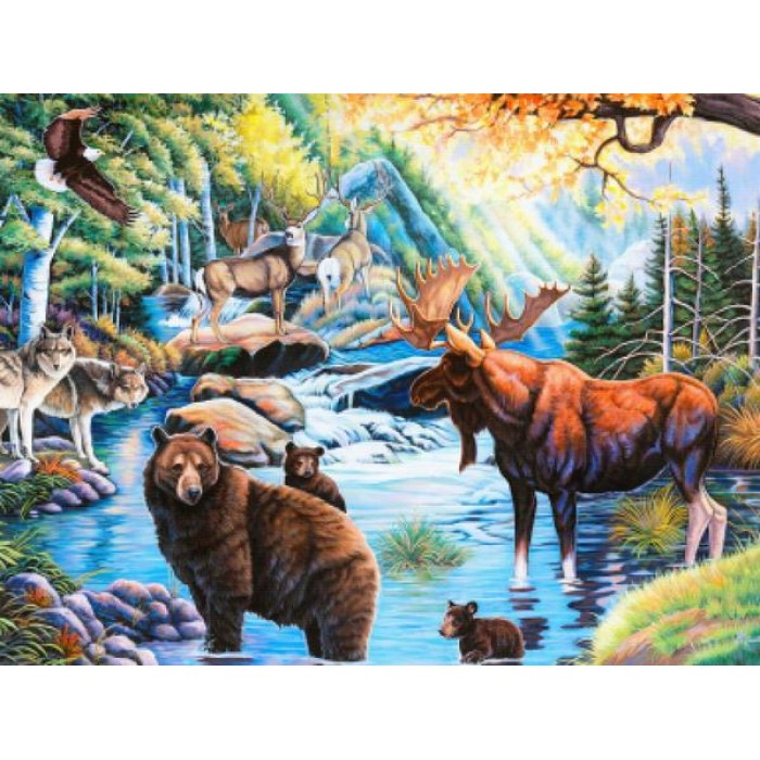 Feel the satisfaction of watching your Diamond Painting come together before your very eyes. This gorgeous artwork entitled "North American Wildlife" by artist Jenny Newland is now available as a Full Drill Diamond Painting Kit in your choice of Square or Round Diamonds.