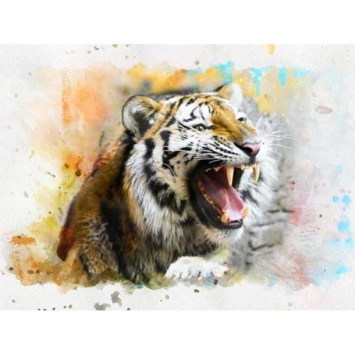 Create your own shimmering DIY wall art, one "diamond" at a time! This gorgeous full drill Diamond Painting Kit is entitled "Fierce Tiger Watercolor" ..