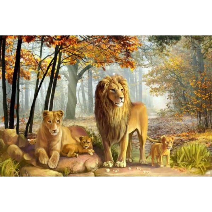 Create your own shimmering DIY wall art, one "diamond" at a time! This gorgeous full drill Diamond Painting Kit is entitled "Happy Lion Family" and includes everything you need to get started!