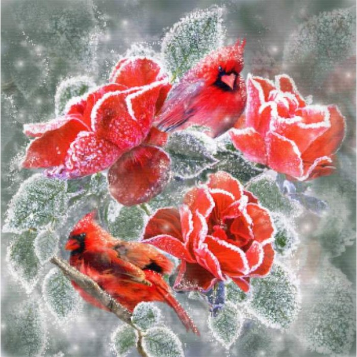 Create your own shimmering DIY wall art, one "diamond" at a time! This gorgeous full drill Diamond Painting Kit is entitled "Winter Roses Cardinals" and includes everything you need to get started!