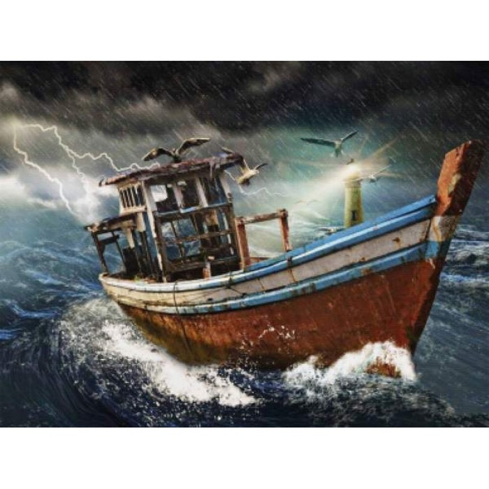 Create your own shimmering DIY wall art, one "diamond" at a time! This gorgeous full drill Diamond Painting Kit is entitled "Rough Seas" and includes everything you need to get started!