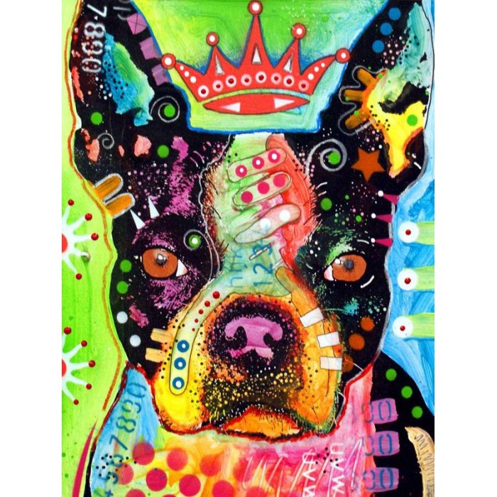 Feel the satisfaction of watching your Diamond Painting come together before your very eyes. This gorgeous artwork entitled "Boston Terrier Crowned" by artist Dean Russo is now available as a Full Drill Diamond Painting Kit in your choice of Square or Round Diamonds.
