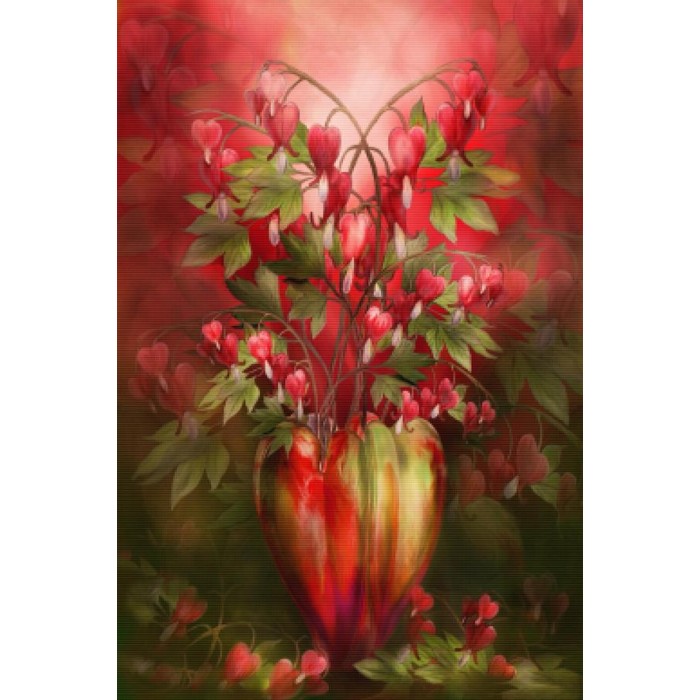 Create your own shimmering DIY wall art, one "diamond" at a time! This gorgeous full drill Diamond Painting Kit is entitled "Bleeding Heart In Vase" and includes everything you need to get started!