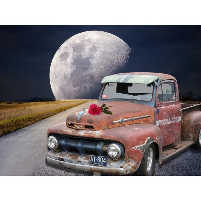 Create your own shimmering DIY wall art, one "diamond" at a time! This gorgeous full drill Diamond Painting Kit is entitled "Full Moon Pickup" and includes everything you need to get started!