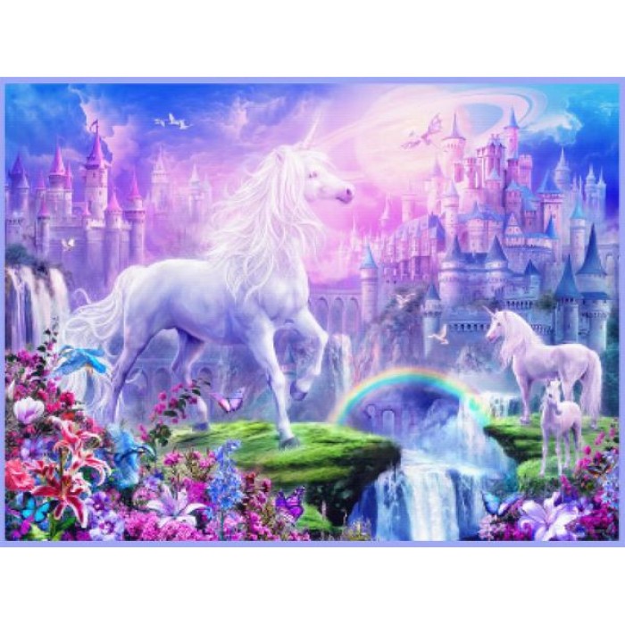 Feel the satisfaction of watching your Diamond Painting come together before your very eyes. This gorgeous artwork entitled "Castle Unicorns" by artist Jan Patrik Krasny is now available as a Full Drill Diamond Painting Kit in your choice of Square or Round Diamonds.