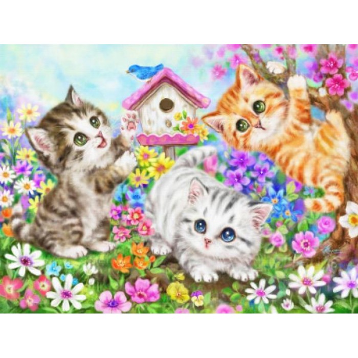 Feel the satisfaction of watching your Diamond Painting come together before your very eyes. This gorgeous artwork entitled "Birdhouse And Kittens" by artist Kayomi Harai is now available as a Full Drill Diamond Painting Kit in your choice of Square or Round Diamonds.