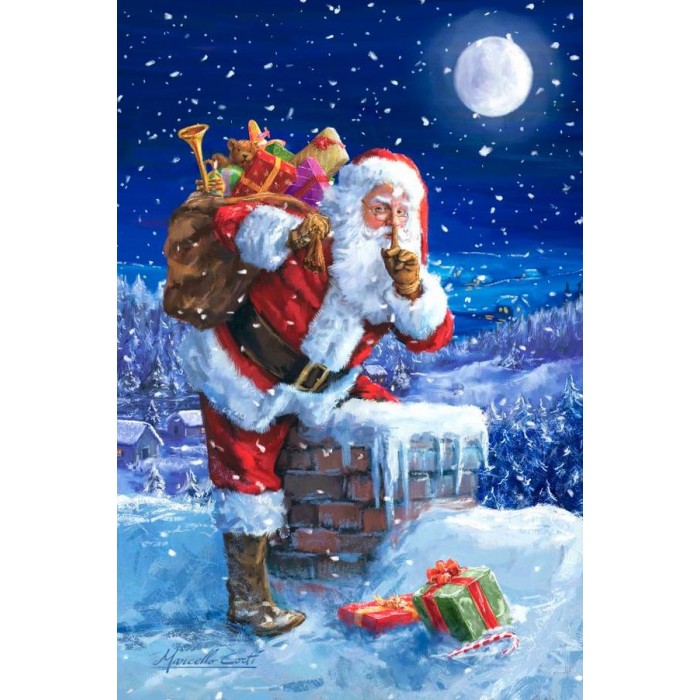 Feel the satisfaction of watching your Diamond Painting come together before your very eyes. This gorgeous artwork entitled "Headed Down The Chimney" by artist Marcello Corti is now available as a Full Drill Diamond Painting Kit in your choice of Square or Round Diamonds.