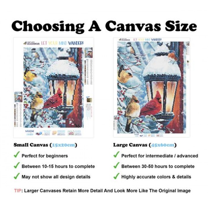 Feel the satisfaction of watching your Diamond Painting come together before your very eyes. This gorgeous artwork entitled "Taking the Chill off the Feathers" by artist Jenny Newland is now available as a Full Drill Diamond Painting Kit in your choice of Square or Round Diamonds.