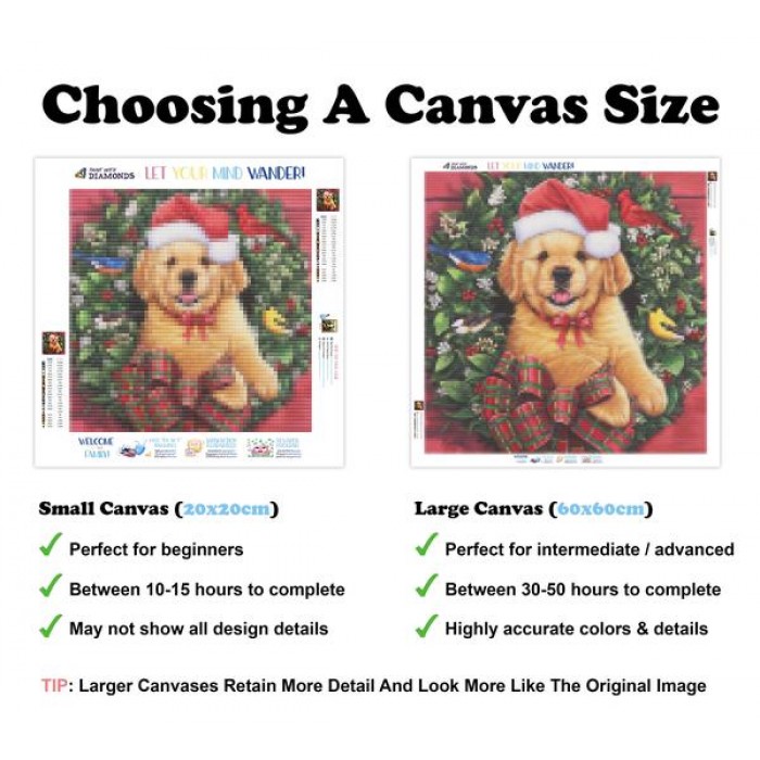 Feel the satisfaction of watching your Diamond Painting come together before your very eyes. This gorgeous artwork entitled "Christmas Puppy" by artist Jenny Newland is now available as a Full Drill Diamond Painting Kit in your choice of Square or Round Diamonds.