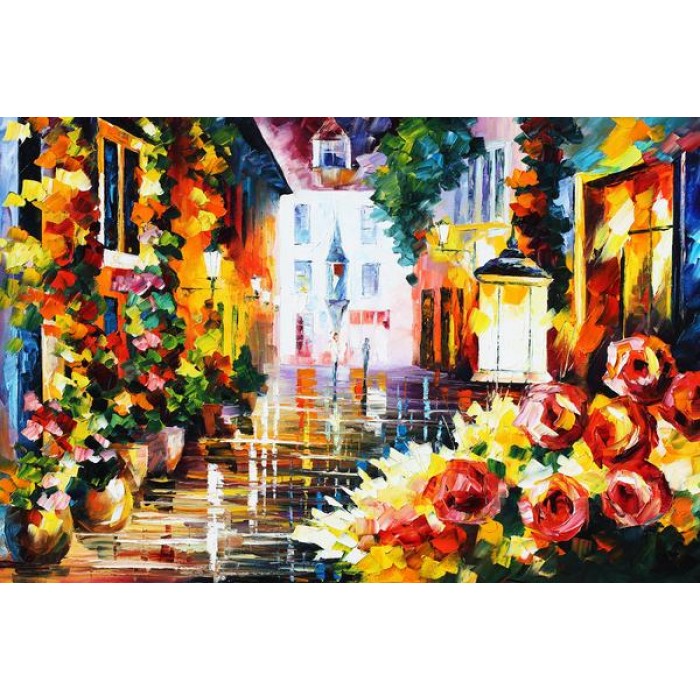 Feel the satisfaction of watching your Diamond Painting come together before your very eyes. This gorgeous artwork entitled "Lovely Street Of Flowers" by artist Leonid Afremov is now available as a Full Drill Diamond Painting Kit in your choice of Square or Round Diamonds.