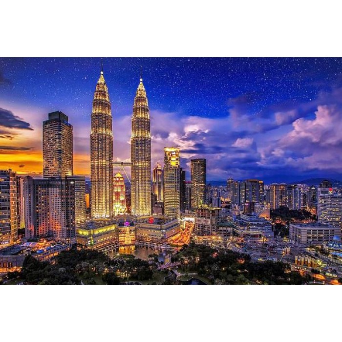 Create your own shimmering DIY wall art, one "diamond" at a time! This gorgeous full drill Diamond Painting Kit is entitled "Malaysia At Midnight" and includes everything you need to get started!