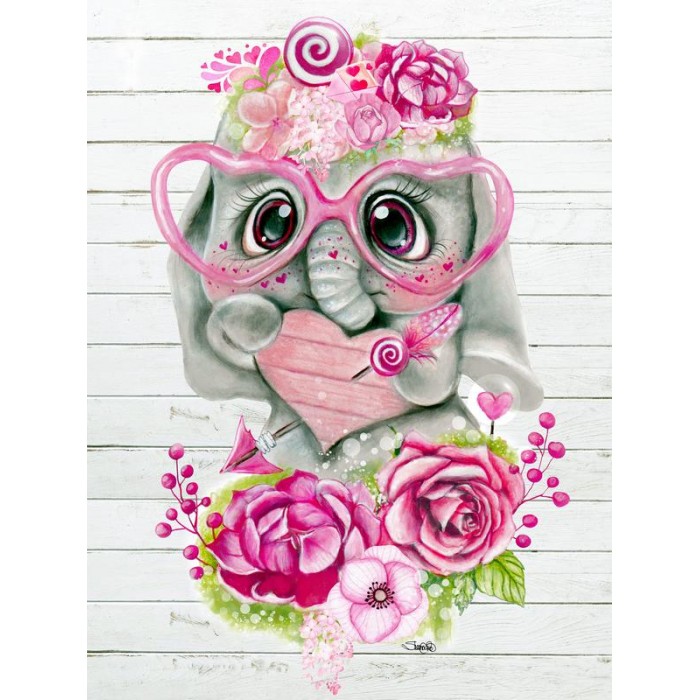 Feel the satisfaction of watching your Diamond Painting come together before your very eyes. This gorgeous artwork entitled "Cute Elephant Valentine" by artist Sheena Pike is now available as a Full Drill Diamond Painting Kit in your choice of Square or Round Diamonds.