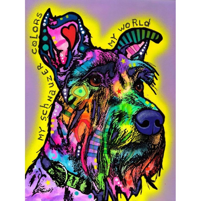 Feel the satisfaction of watching your Diamond Painting come together before your very eyes. This gorgeous artwork entitled "My Schnauzer" by artist Dean Russo is now available as a Full Drill Diamond Painting Kit in your choice of Square or Round Diamonds.