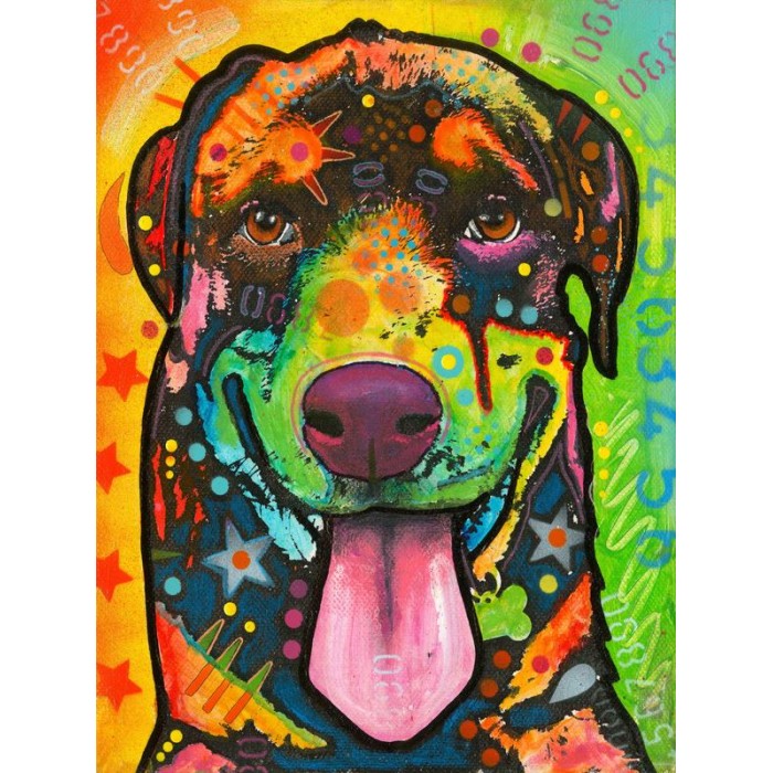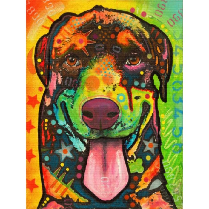 Feel the satisfaction of watching your Diamond Painting come together before your very eyes. This gorgeous artwork entitled "Rottie Pup" by artist Dean Russo is now available as a Full Drill Diamond Painting Kit in your choice of Square or Round Diamonds.