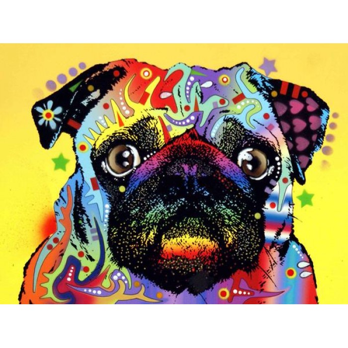 Feel the satisfaction of watching your Diamond Painting come together before your very eyes. This gorgeous artwork entitled "Shocked Pug" by artist Dean Russo is now available as a Full Drill Diamond Painting Kit in your choice of Square or Round Diamonds.