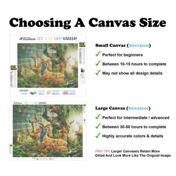 Feel the satisfaction of watching your Diamond Painting come together before your very eyes. This gorgeous artwork entitled "Deer Family in the Forest" by artist Adrian Chesterman is now available as a Full Drill Diamond Painting Kit in your choice of Square or Round Diamonds.