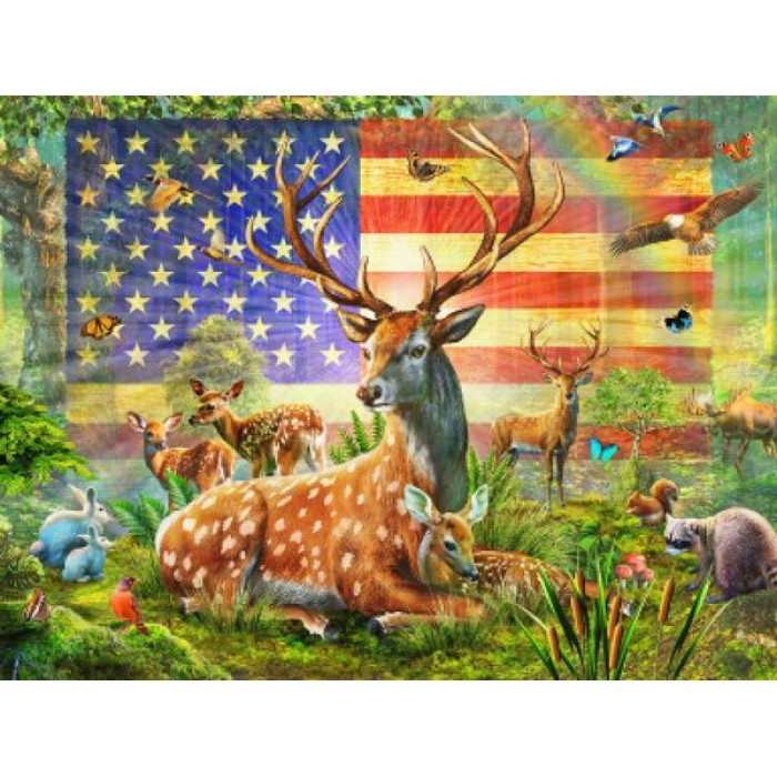 Feel the satisfaction of watching your Diamond Painting come together before your very eyes. This gorgeous artwork entitled "Patriotic Deer" by artist Adrian Chesterman is now available as a Full Drill Diamond Painting Kit in your choice of Square or Round Diamonds.