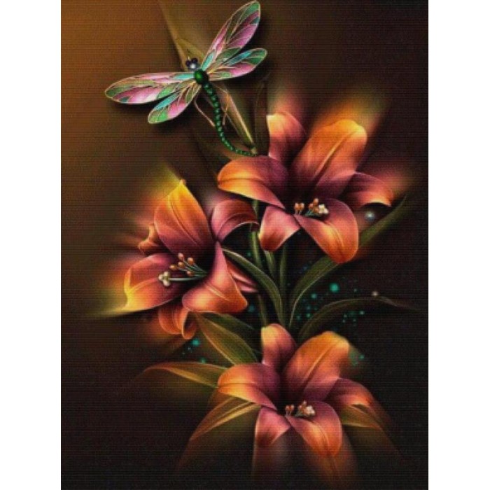 This gorgeous Full Drill Diamond Painting Kit is entitled "Dragonfly Illumination" and includes a premium toolkit with your choice of Square or Round Diamonds.