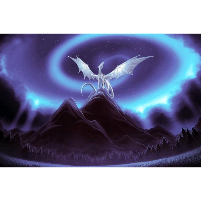 Create your own shimmering DIY wall art, one "diamond" at a time! This gorgeous full drill Diamond Painting Kit is entitled "Dragon Atop The Mountain" and includes everything you need to get started!