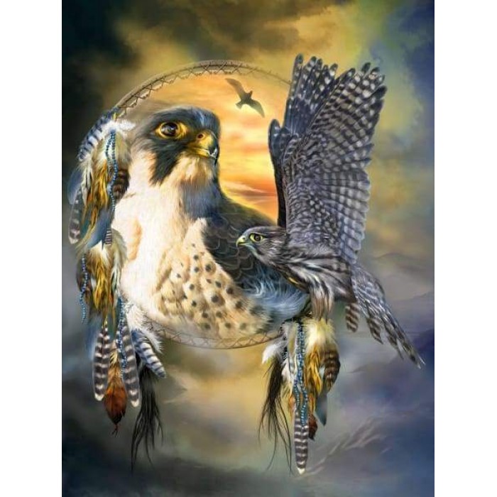 Create your own shimmering DIY wall art, one "diamond" at a time! This gorgeous full drill Diamond Painting Kit is entitled "Falcon Dreams" and includes everything you need to get started!