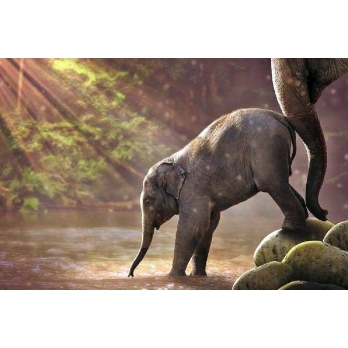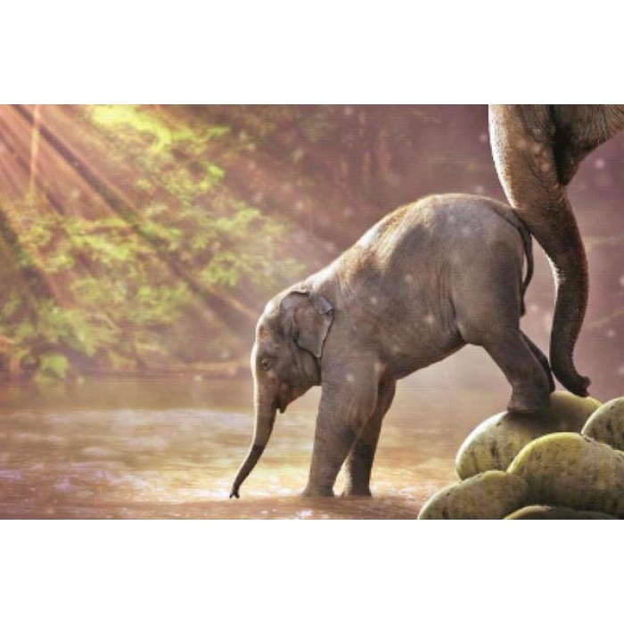 Create your own shimmering DIY wall art, one "diamond" at a time! This gorgeous full drill Diamond Painting Kit is entitled "Baby Elephant Bath" and includes everything you need to get started!