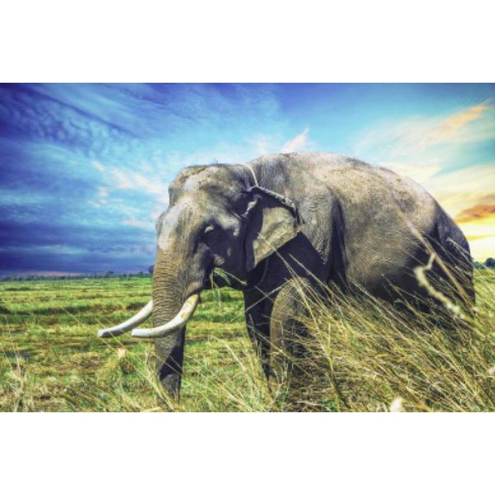 Create your own shimmering DIY wall art, one "diamond" at a time! This gorgeous full drill Diamond Painting Kit is entitled "Elephant At Dusk" and includes everything you need to get started!