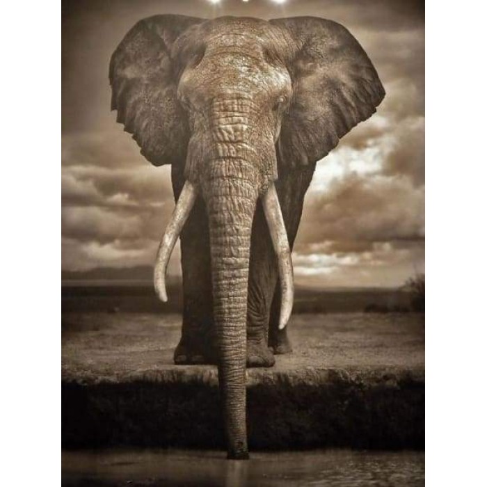 Create your own shimmering DIY wall art, one "diamond" at a time! This gorgeous full drill Diamond Painting Kit is entitled "Elephant By The Watering ..