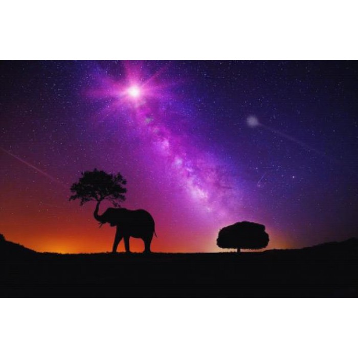 Create your own shimmering DIY wall art, one "diamond" at a time! This gorgeous full drill Diamond Painting Kit is entitled "Elephant In Another Galaxy" and includes everything you need to get started!