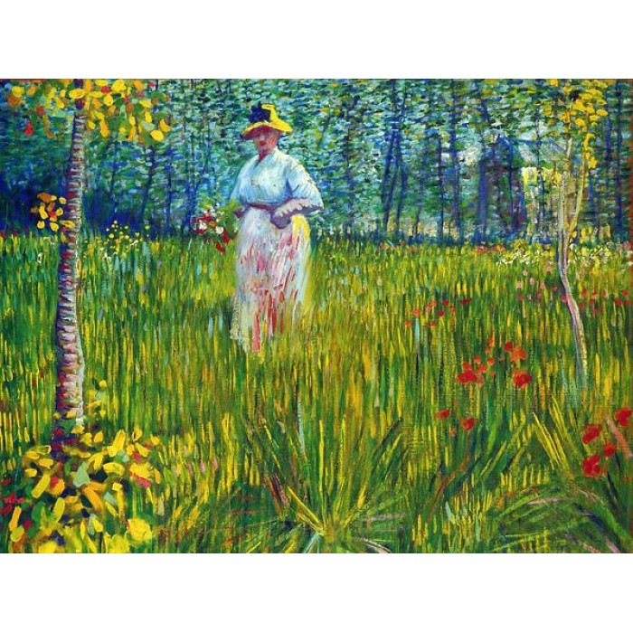 Create your own shimmering DIY wall art, one "diamond" at a time! This gorgeous full drill Diamond Painting Kit is entitled "Femme Dans Un Jardin" and includes everything you need to get started!