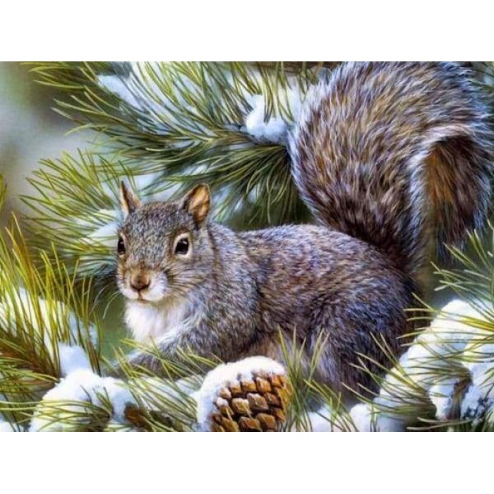 Create your own shimmering DIY wall art, one "diamond" at a time! This gorgeous full drill Diamond Painting Kit is entitled "Looking For A Nut" and includes everything you need to get started!