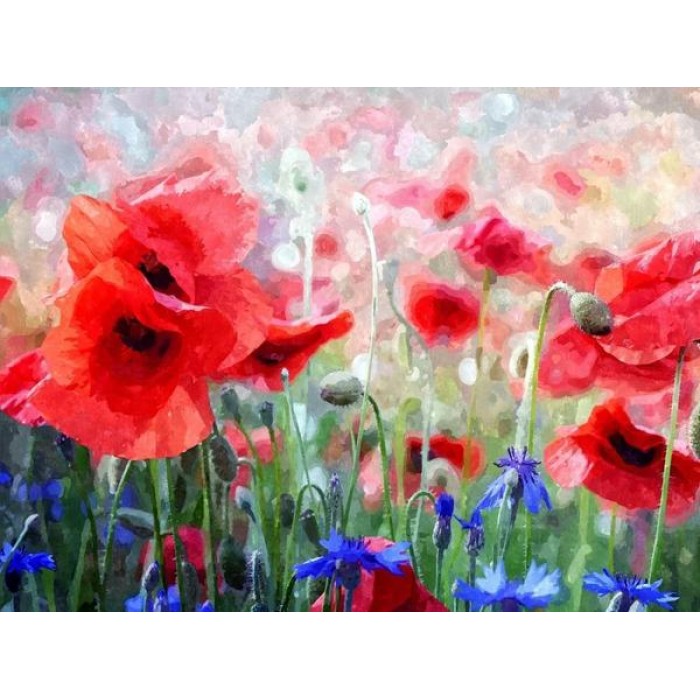 Create your own shimmering DIY wall art, one "diamond" at a time! This gorgeous full drill Diamond Painting Kit is entitled "Red Poppies and Blue Cornflowers" and includes everything you need to get started!