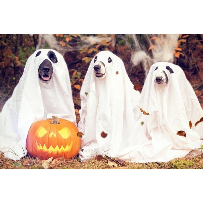 Create your own shimmering DIY wall art, one "diamond" at a time! This gorgeous full drill Diamond Painting Kit is entitled "Ghost Doggies" and includes everything you need to get started!