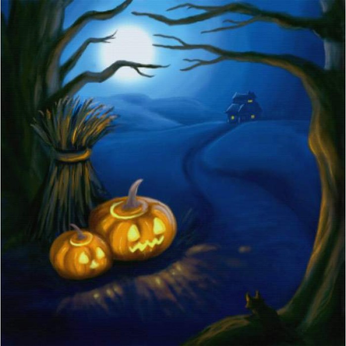Create your own shimmering DIY wall art, one "diamond" at a time! This gorgeous full drill Diamond Painting Kit is entitled "Jack O Lanterns" and includes everything you need to get started!