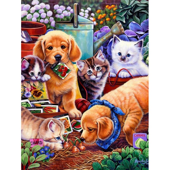 Feel the satisfaction of watching your Diamond Painting come together before your very eyes. This gorgeous artwork entitled "Helpful Garden Paws" by artist Jenny Newland is now available as a Full Drill Diamond Painting Kit in your choice of Square or Round Diamonds.