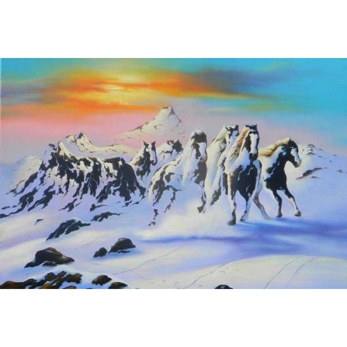 Feel the satisfaction of watching your Diamond Painting come together before your very eyes. This gorgeous artwork entitled "Horses In The Snow" by artist Jim Warren is now available as a Full Drill Diamond Painting Kit in your choice of Square or Round Diamonds.