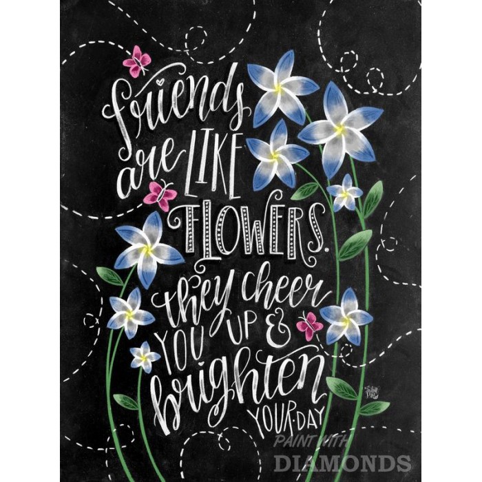 Feel the satisfaction of watching your Diamond Painting come together before your very eyes. This gorgeous artwork entitled "Friends Are Like Flowers" by artist Shannon Roberts is now available as a Full Drill Diamond Painting Kit in your choice of Square or Round Diamonds.