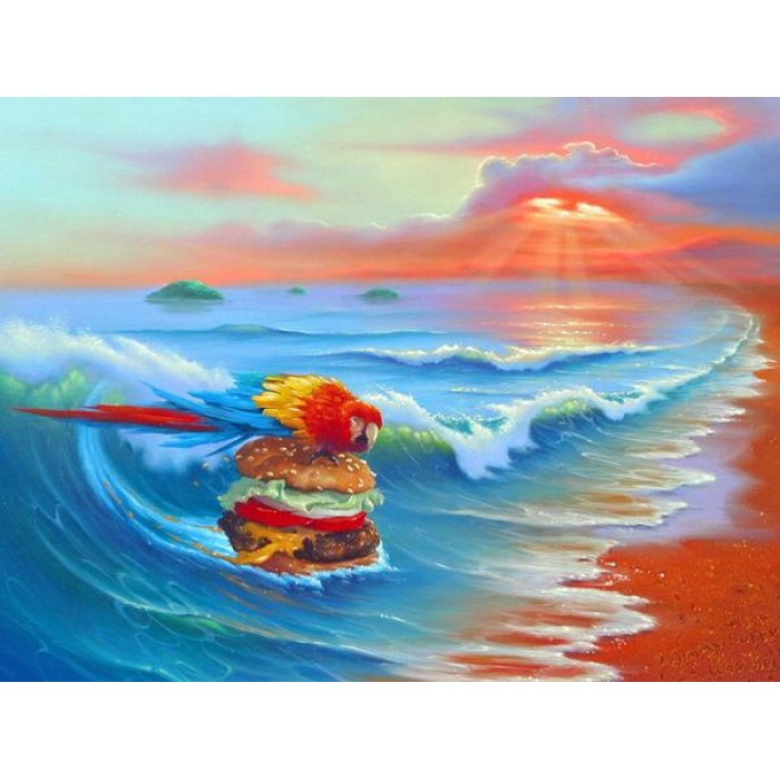 Feel the satisfaction of watching your Diamond Painting come together before your very eyes. This gorgeous artwork entitled "Cheeseburger In Paradise" by artist Jim Warren is now available as a Full Drill Diamond Painting Kit in your choice of Square or Round Diamonds.