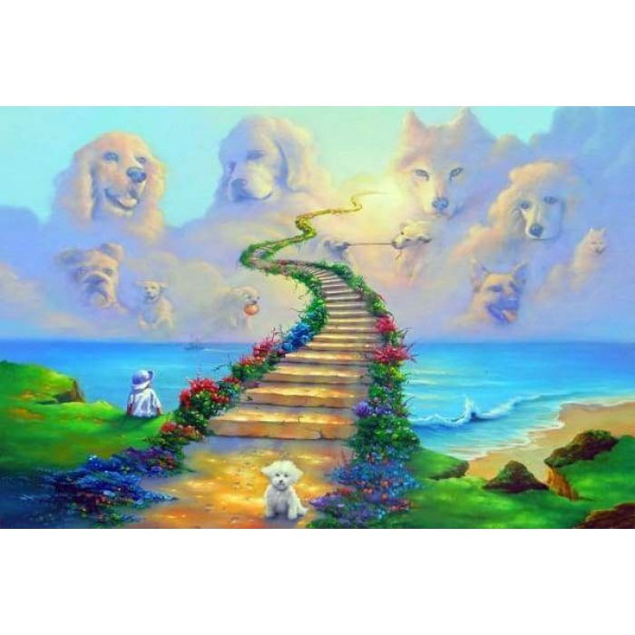 Create your own shimmering DIY wall art, one "diamond" at a time! This gorgeous full drill Diamond Painting Kit is entitled "JUMBO All Dogs Go To Heaven" and includes everything you need to get started!