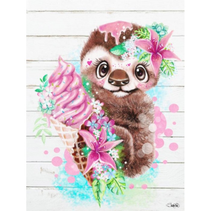 Feel the satisfaction of watching your Diamond Painting come together before your very eyes. This gorgeous artwork entitled "Just Chillin' Ice Cream Sloth" by artist Sheena Pike is now available as a Full Drill Diamond Painting Kit in your choice of Square or Round Diamonds.