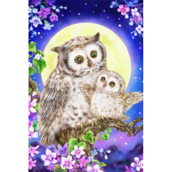 Feel the satisfaction of watching your Diamond Painting come together before your very eyes. This gorgeous artwork entitled "Moonlight Owls" by artist Kayomi Harai is now available as a Full Drill Diamond Painting Kit in your choice of Square or Round Diamonds.