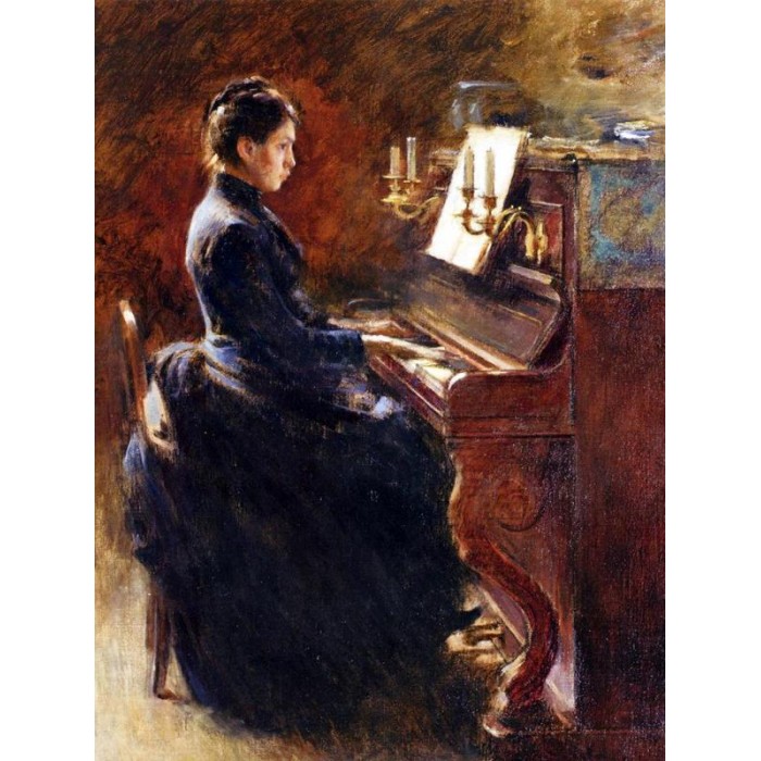 Create your own shimmering DIY wall art, one "diamond" at a time! This gorgeous full drill Diamond Painting Kit is entitled "Girl At Piano" and includes everything you need to get started!